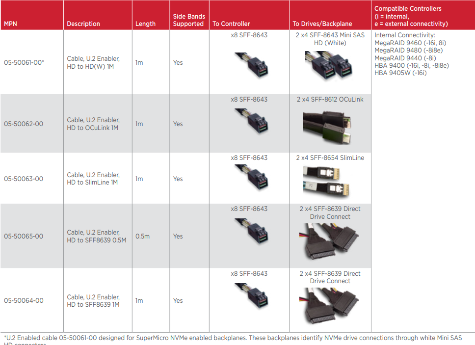 U.2 Enabled Cables for 94xx Series
