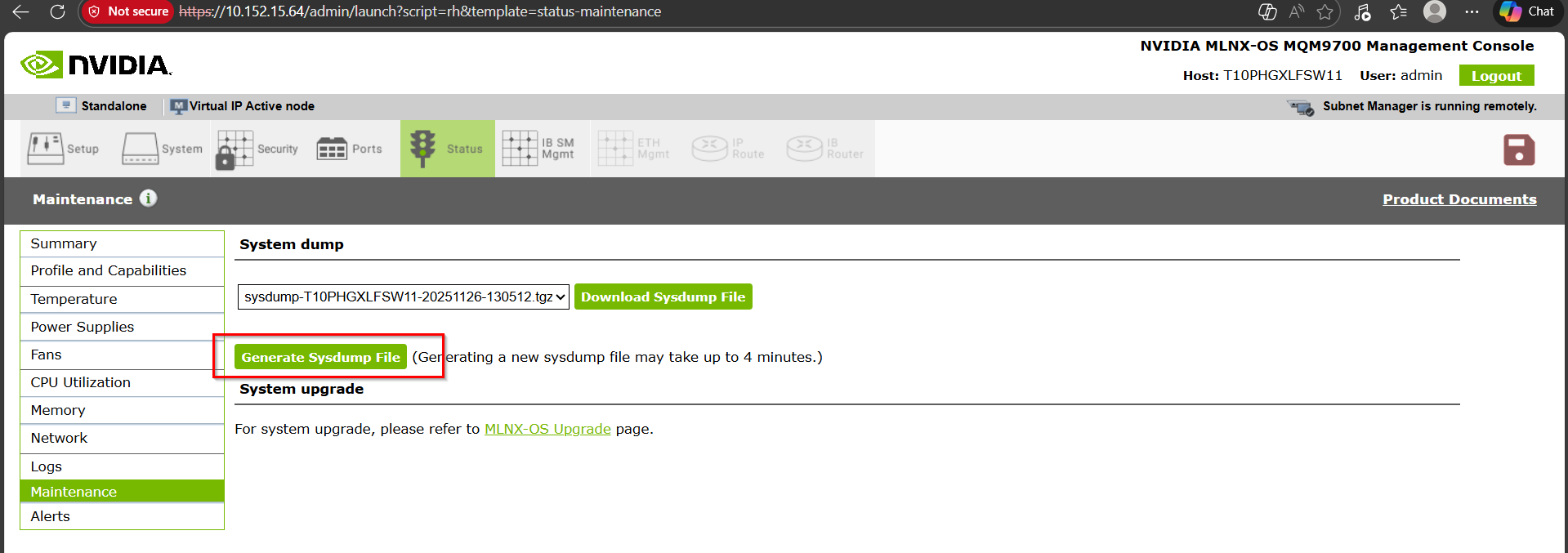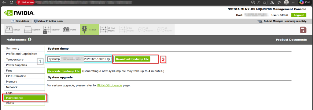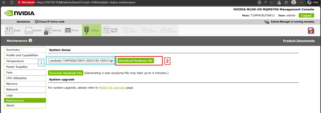 Collect Logs from NVIDIA QM9700 InfiniBand Switch (Sysdump) - Web GUI