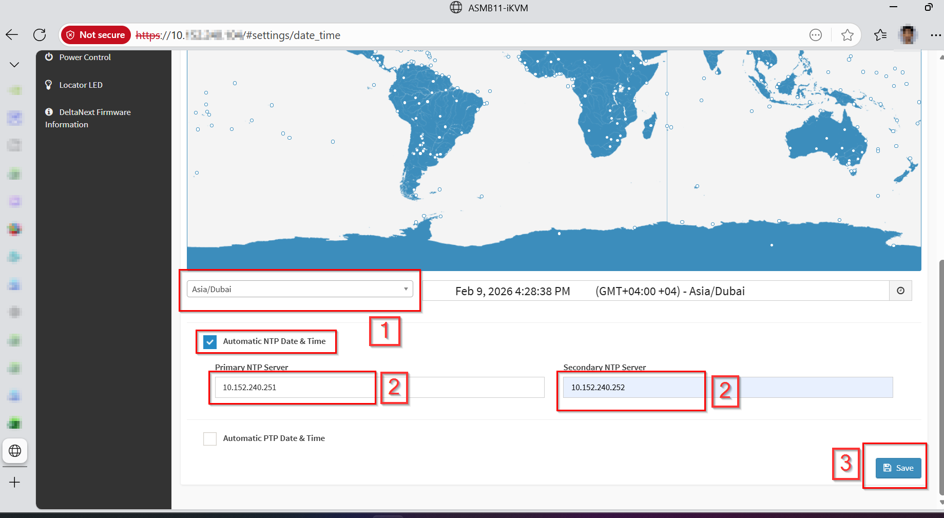 Enable Automatic NTP Date & Time and Configure the NTP servers as follows: