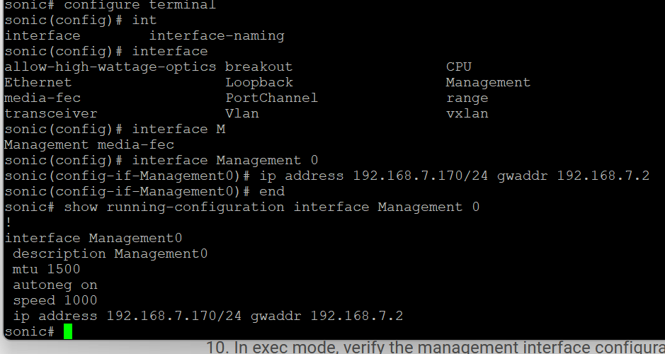 Configuring Management Interface 0 (eth0) on SONiC 4.5.0 Switch via SONiC CLI