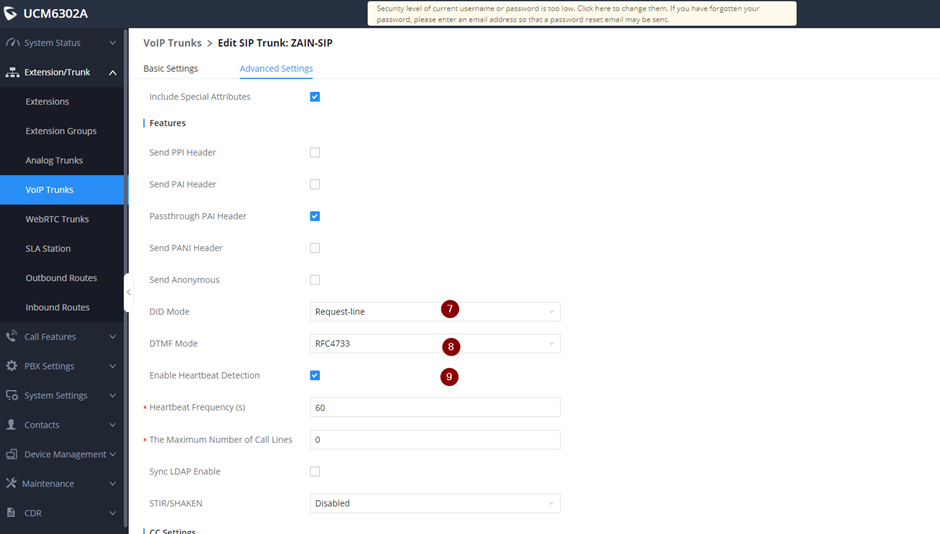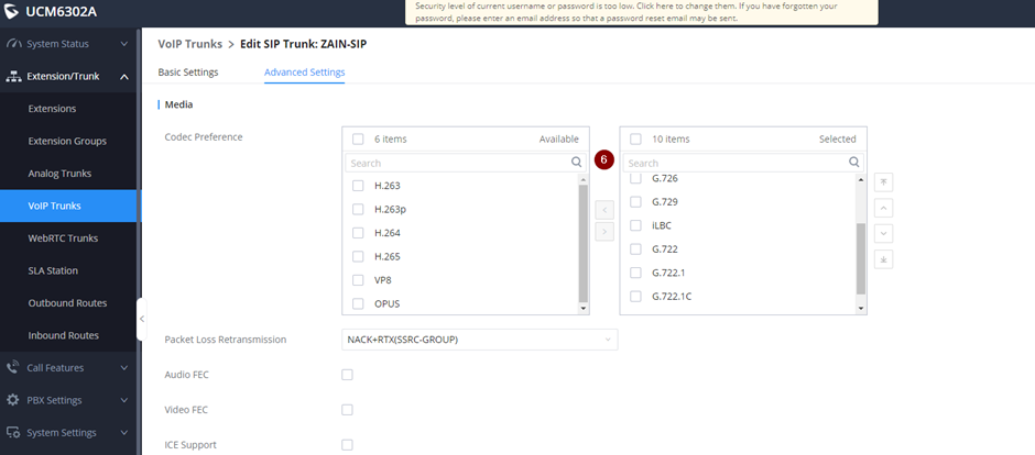 In the Advanced Settings, Select all the G series and iLBC Codecs