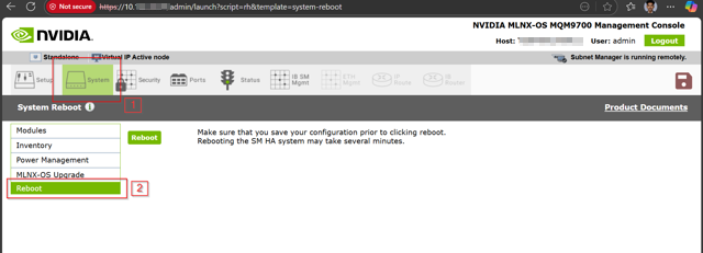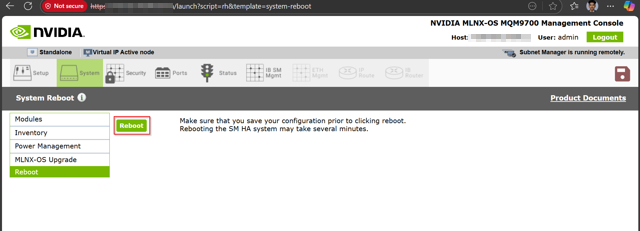 Step 1: Remote Reboot via NVIDIA QM9700 Web GUI