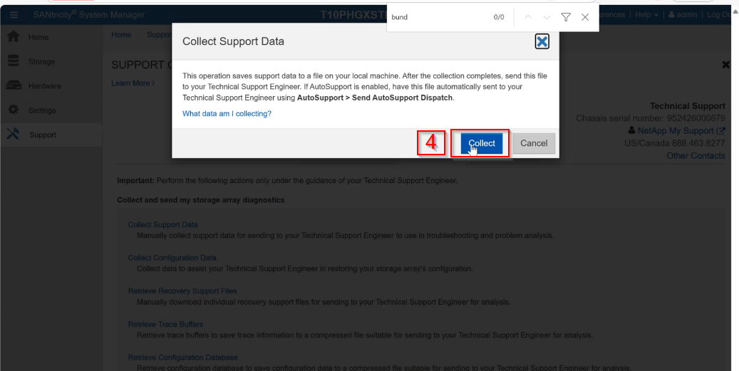 - Inside SANtricity, on the left-hand Navigation pane, select the Support option