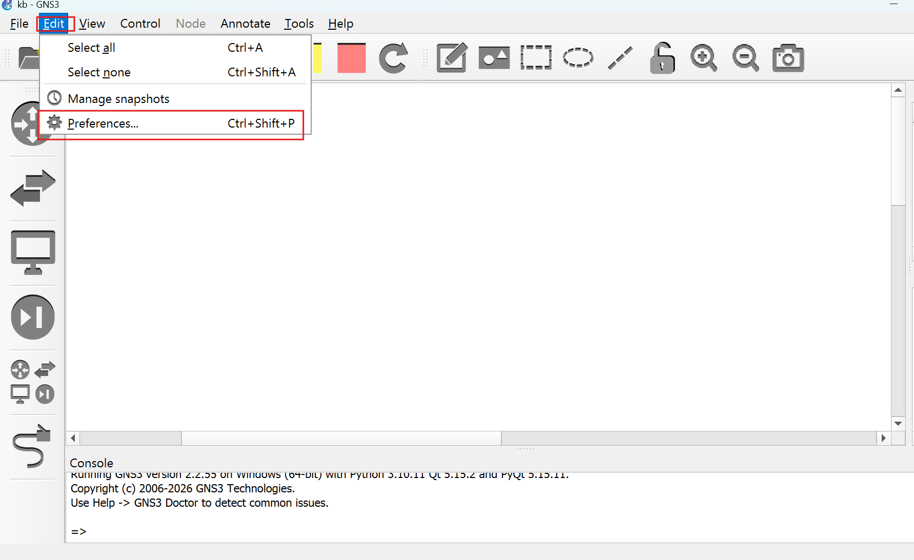Step 1: Open GNS3