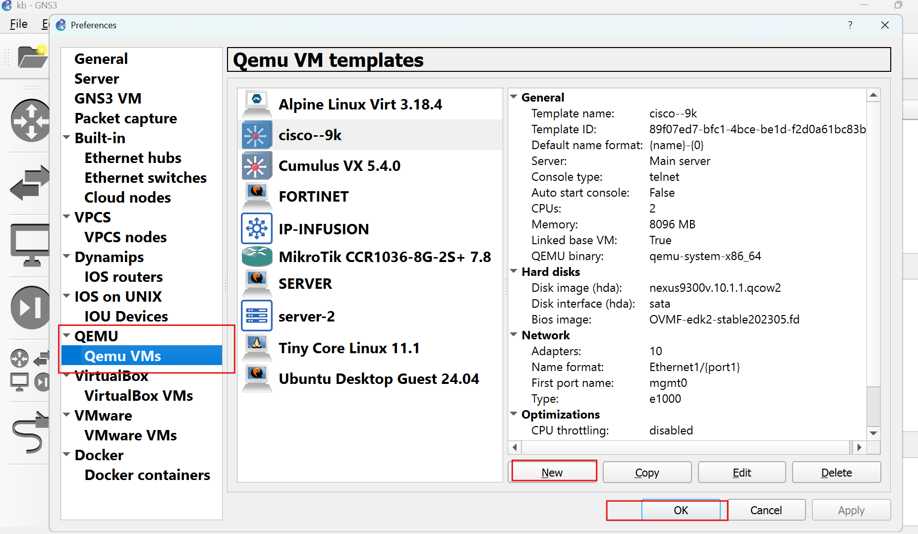 You will see the QEMU VM Templates window.