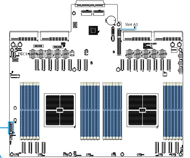 - Remove the Add on cards and find the Slot A1 in the Mother board. Slot A1 is the slot for AOM-PTG-I2T-P riser card in the server As-4125GS-TNRT2.